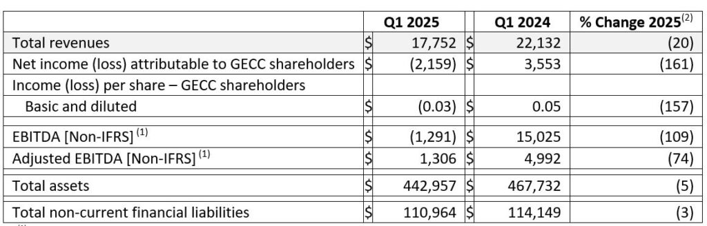 Some statements in this news release contain forward-looking information (the “forward-looking statements“) about the Company and its plans. Forward-looking statements are statements that are not historical facts. Forward-looking statements in this news release include, without limitation, the expected continued downward pressure on interest rates. The forward-looking statements are subject to various risks, uncertainties and other factors (collectively, the “Risks“) that could cause GECC’s actual results or achievements to differ materially from those expressed in or implied by forward-looking statements. The Risks include, without limitation, customary risks of the construction industry, unexpected delays or requirements of the applicable municipalities, an increase in inflation rates and the risk factors identified in the MD&A forming part of the 2025 Q1 Financial Report. Forward-looking statements are based on the beliefs, opinions and expectations of GECC’s management at the time they are made, and the Company does not assume any obligation to update its forward-looking statements if those beliefs, opinions or expectations, or other circumstances should change, except as may be required by law.