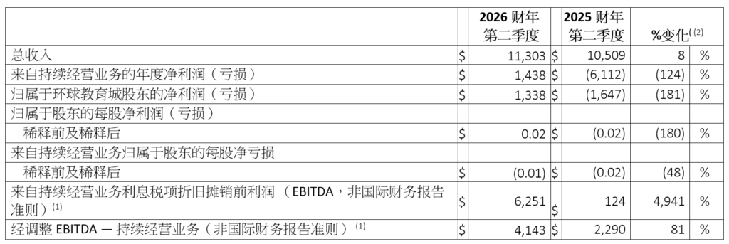 环球教育城集团公布 2026 财年第二季度财务业绩